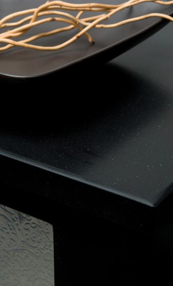 Exquisitely dark, highlighted by a subtle pattern creating a sleek and sophisticated surface that is a brilliant statement of luxury.