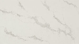 Classic elegance of a feathered dove-white base, contrasted by broad light-grey veins in a clouded swirl that is absorbed deep into the surface, like mist.