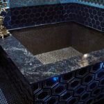 Eclectic bathroom tub in Caesarstone 5100 Vanilla Noir | 8333