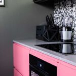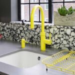 Connectivity in the kitchen space is achieved, between a broad palette of colours and a mix of various materials all balanced together by the sleek and tactile stone worktop.